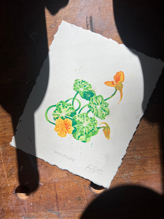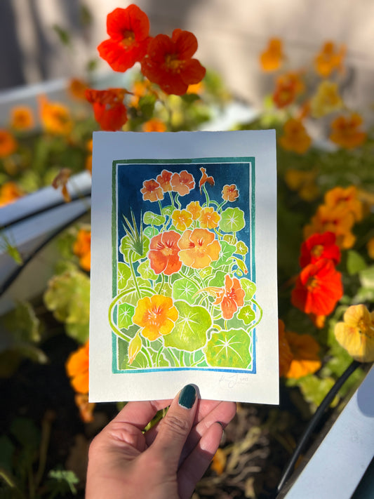 'Nasturtiums' Linocut