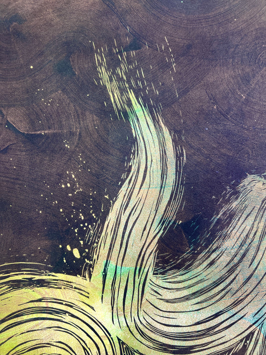 Limited edition prints hand-made by the artist, not a computer or digital printer. Each piece is pulled using either an etching press or baren. The plates are made by hand using traditional carving, etching, and engraving methods. Each piece is signed, numbered, and embossed by the artist. Once an edition is sold out, no more of that art will ever be printed.